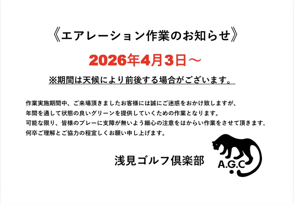 エアレーション日程のお知らせ